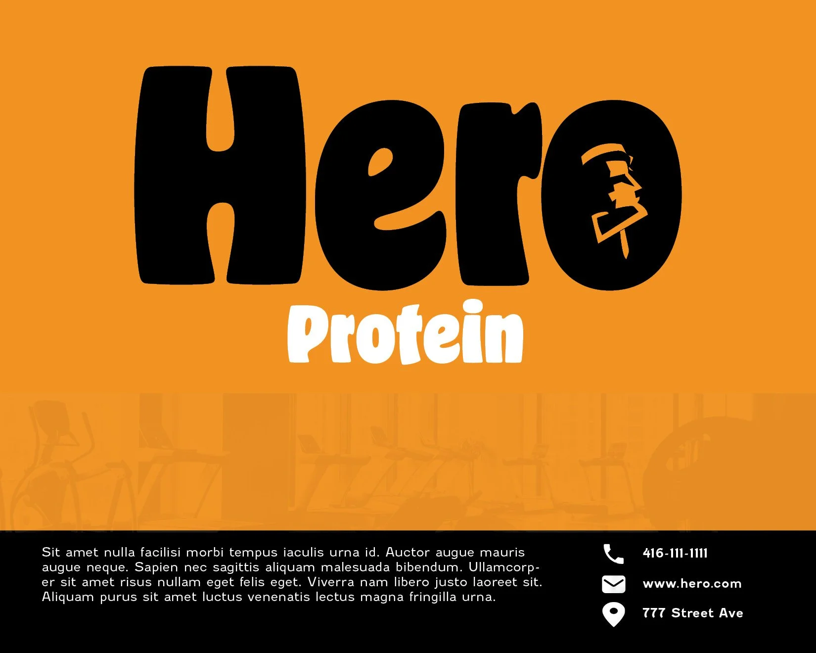 This is a Flyer I designed in InDesign for the fictitious protein brand I created called “Hero” the goal of this flyer was to provide consumers with more information on the protein and when to take it while working out, as well as the benefits of doing so.